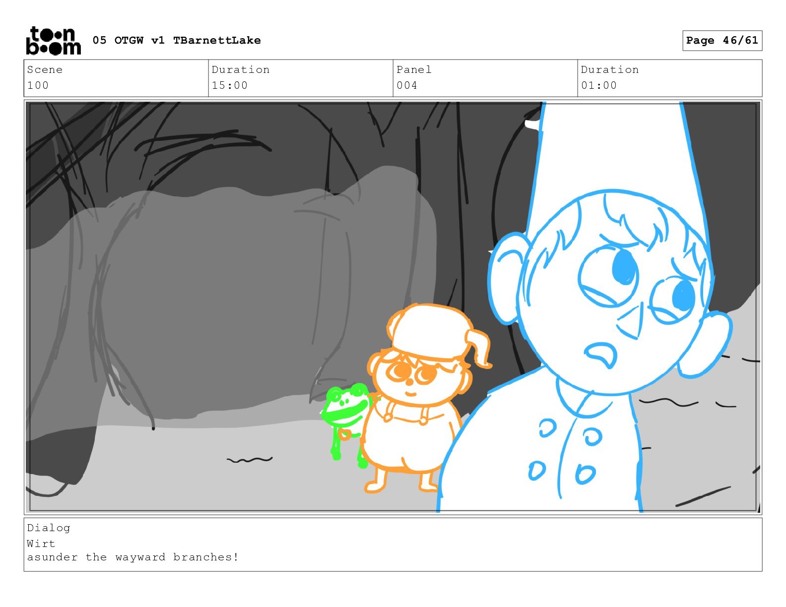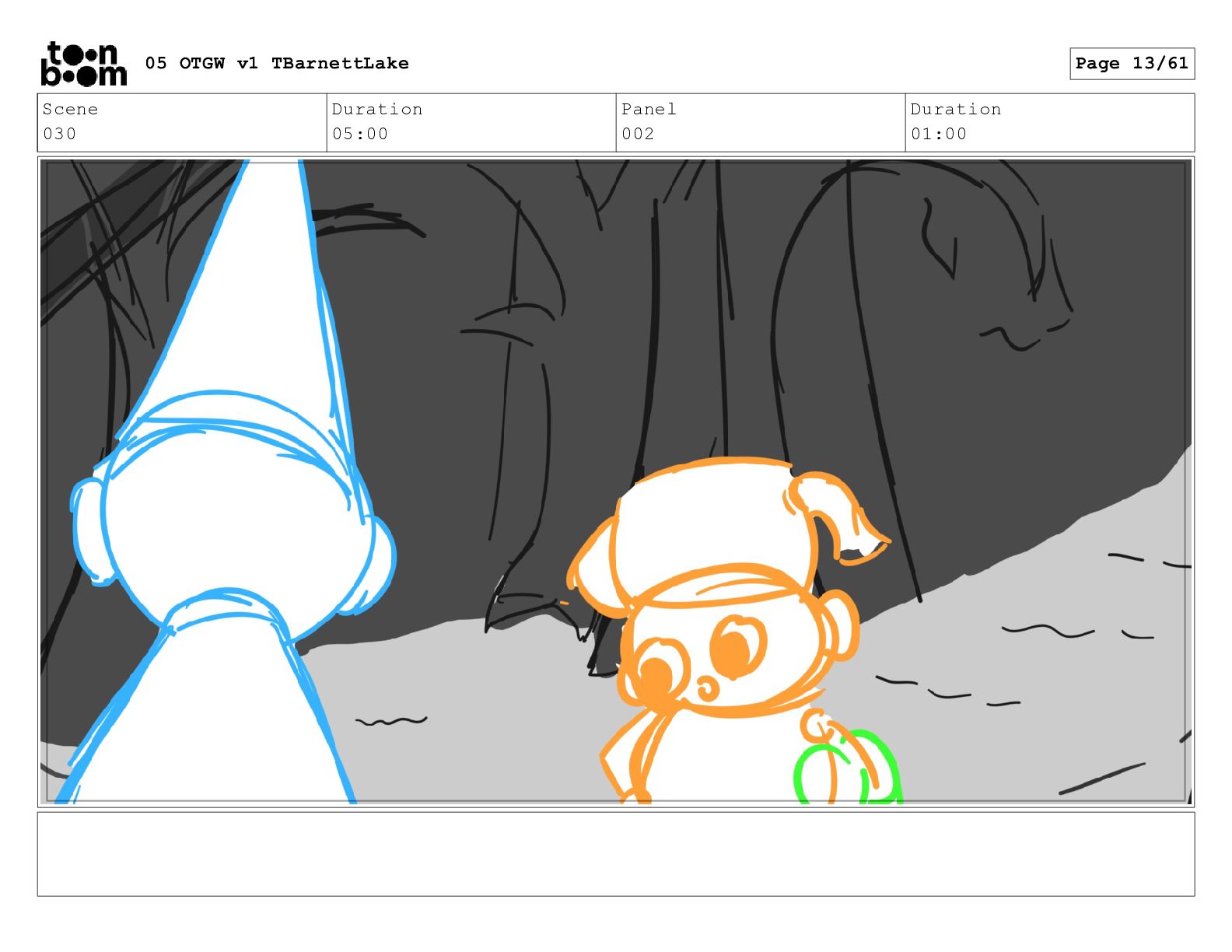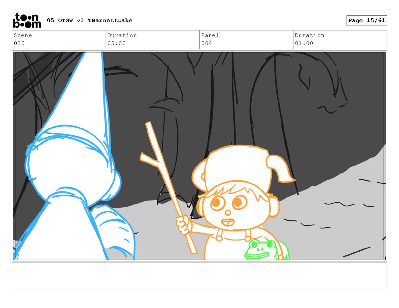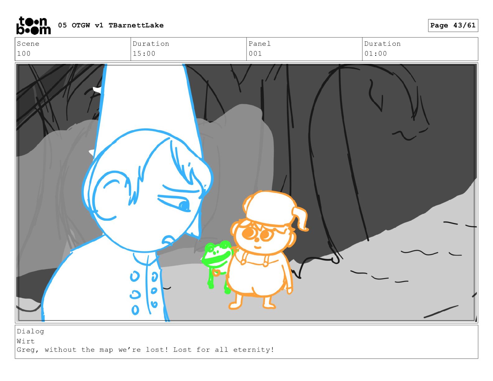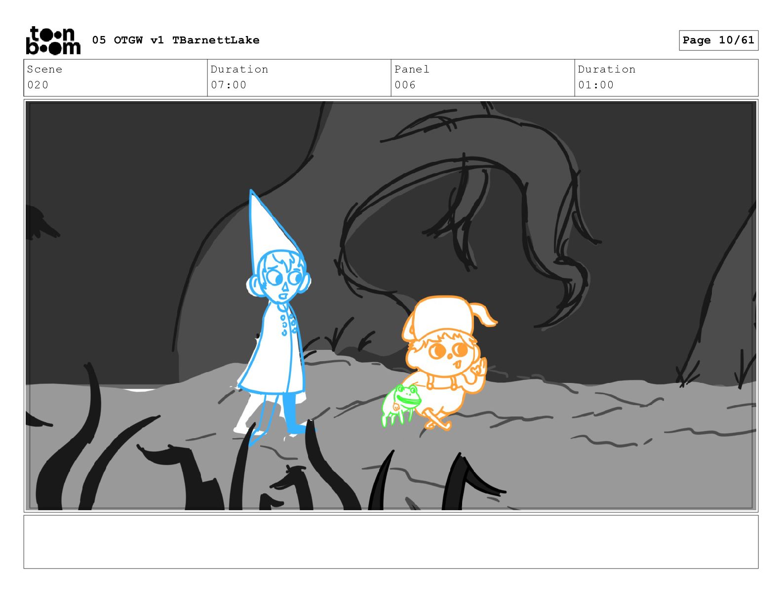 (continued; building into a deep sense of existential terror) We are the sullen driftwood long forgotten by our mother trees pushed ever out by the river and int 05 OTGW v1 TBarnettLake Page 47/61