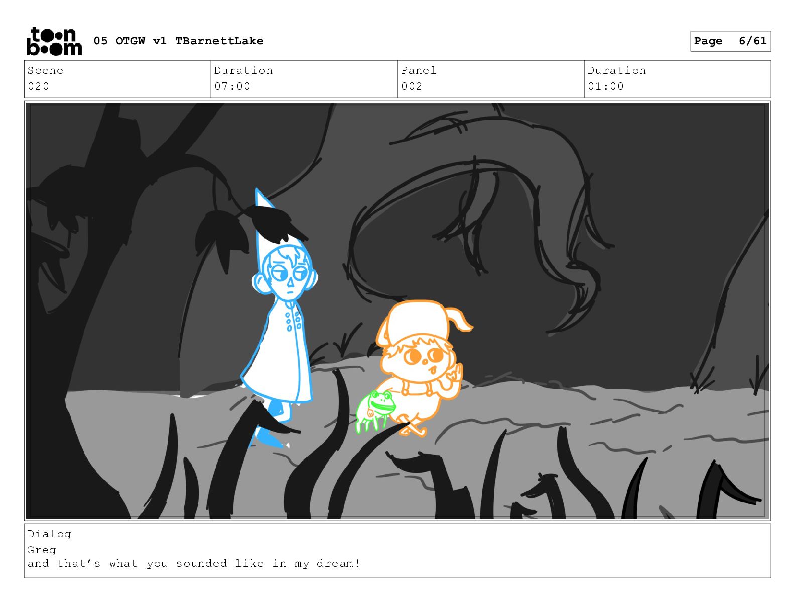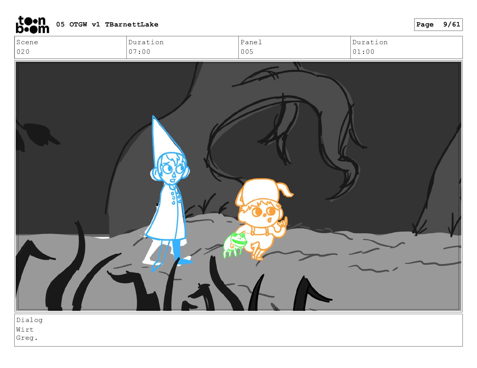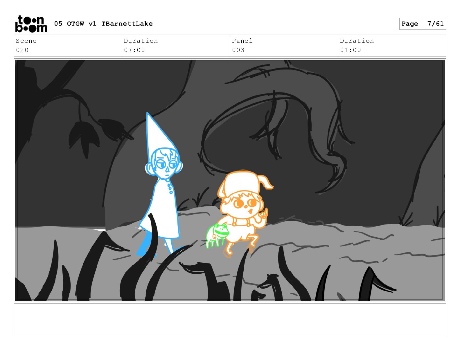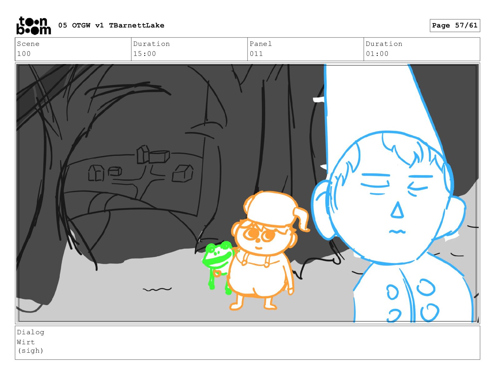 (continued; building into a deep sense of existential terror) We are the sullen driftwood long forgotten by our mother trees pushed ever out by the river and int 05 OTGW v1 TBarnettLake Page 47/61