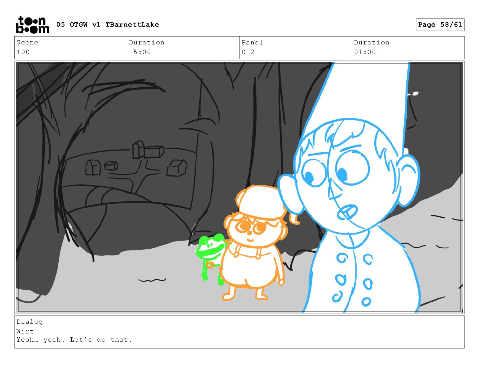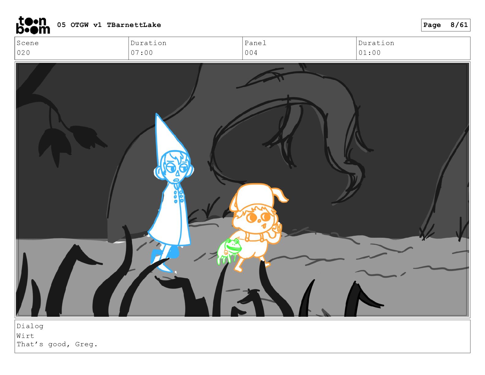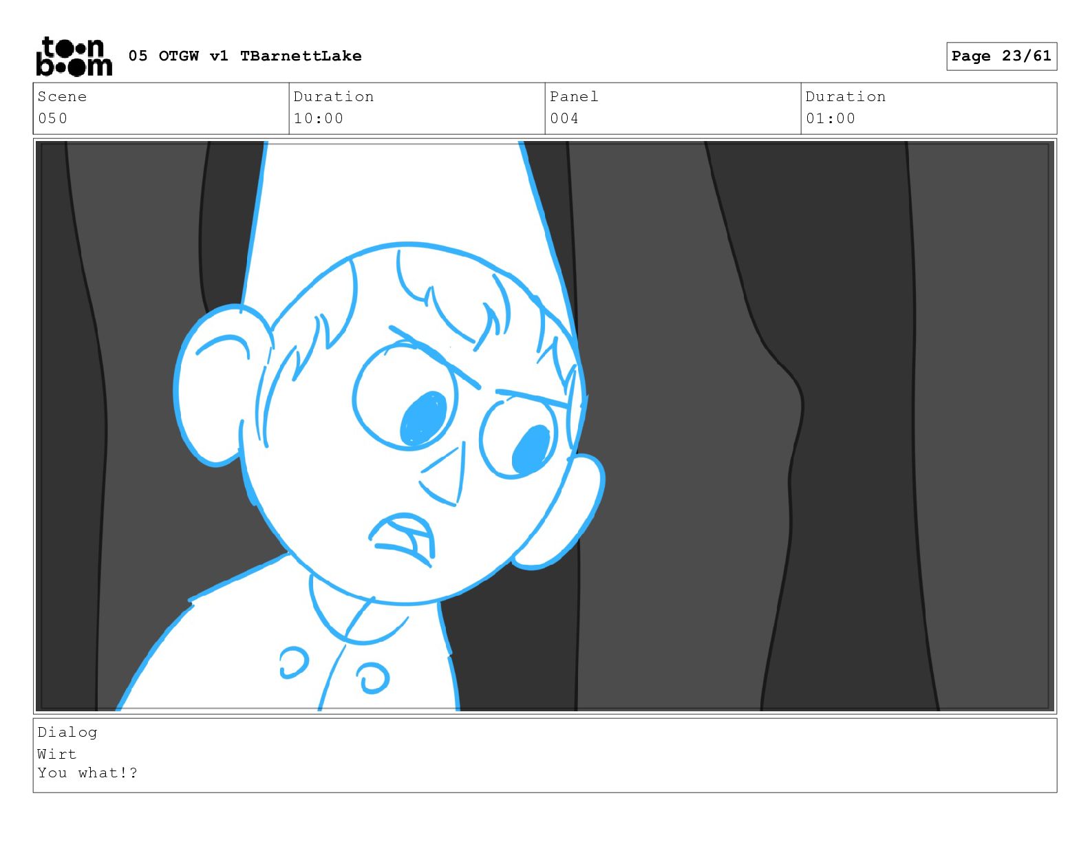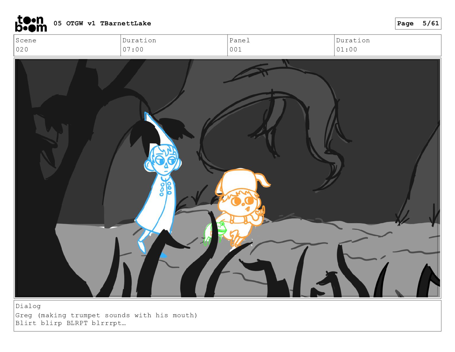 (continued; building into a deep sense of existential terror) We are the sullen driftwood long forgotten by our mother trees pushed ever out by the river and int 05 OTGW v1 TBarnettLake Page 47/61