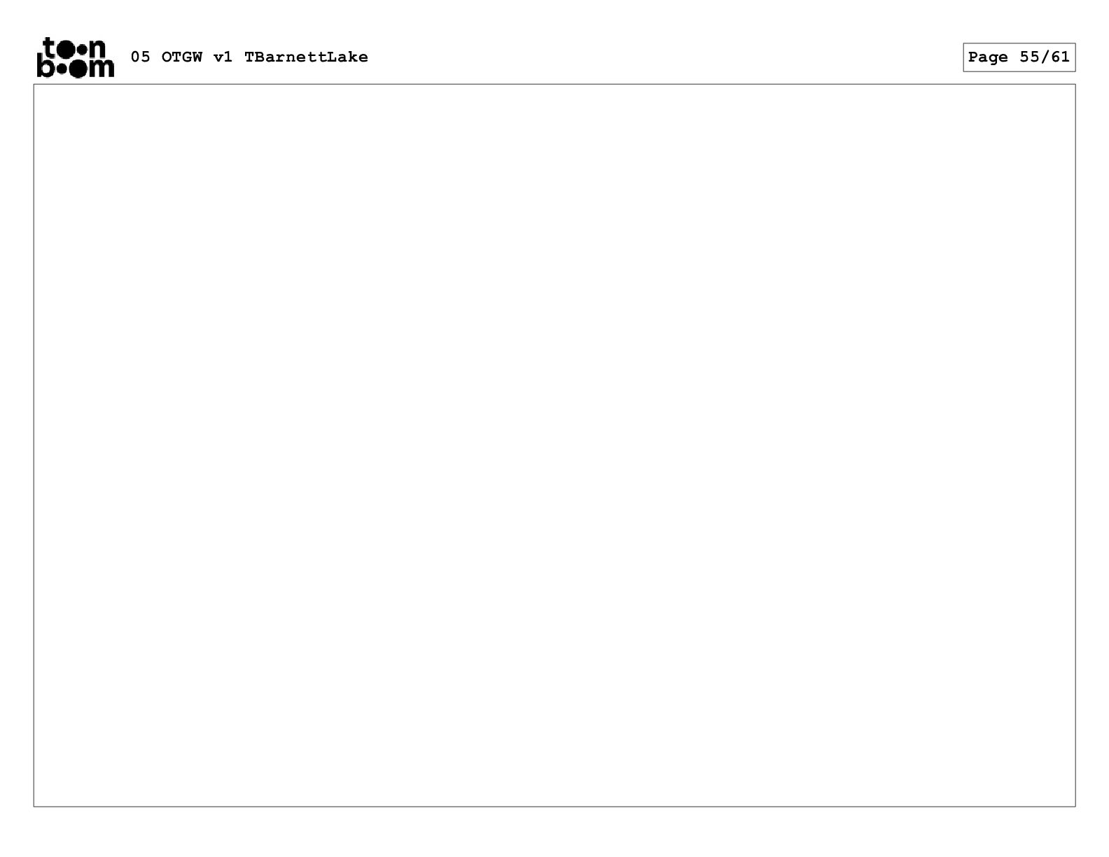 (continued; building into a deep sense of existential terror) We are the sullen driftwood long forgotten by our mother trees pushed ever out by the river and int 05 OTGW v1 TBarnettLake Page 51/61