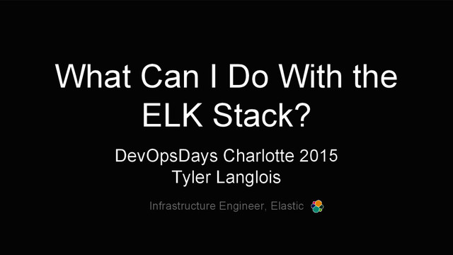 POST :9200 • Document Store Elasticsearch on- premise, Found, Docker, etc. SaaS Options • Visualization Kibana runs in-browser Access controls/basic auth supported Really, anything that can throw JSON at a REST endpoint Scaled appropriately (1 - ??? nodes) Most settings are stored in an Elasticsearch index; simple deployment