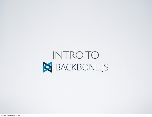 all Javascript tool. • Backbone will get you 80% of the way there. There are plenty of awesome Backbone plugins that will extend the functionality you might be looking for. (Storage, Relations, Widgets, etc) • Agnostic framework. Bring whatever libraries, coding style, or whatever you like to the table, Backbone doesn’t care (too much). Friday, December 7, 12