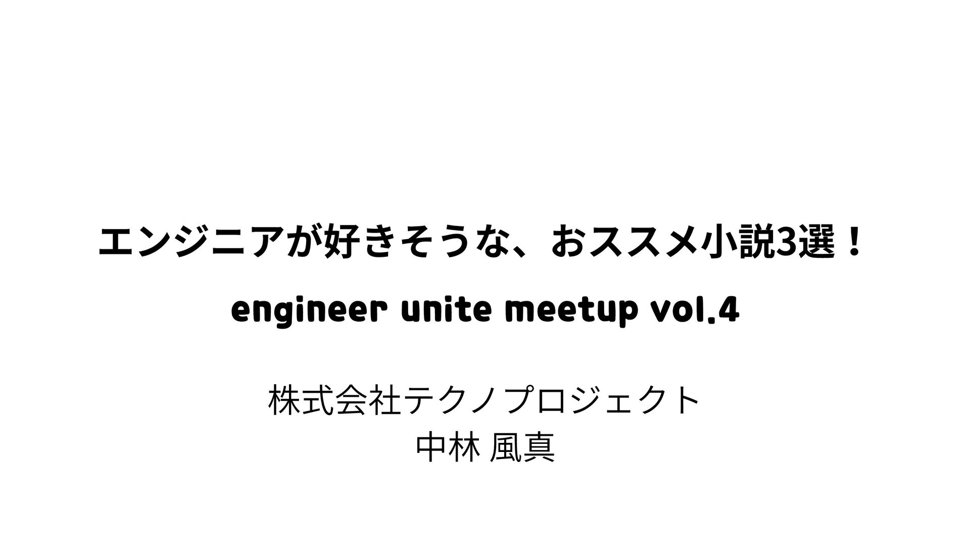 エンジニアが好きそうな、おススメ小説3選! 株式会社テクノプロジェクト 中林 風真 engineer unite meetup vol.4
