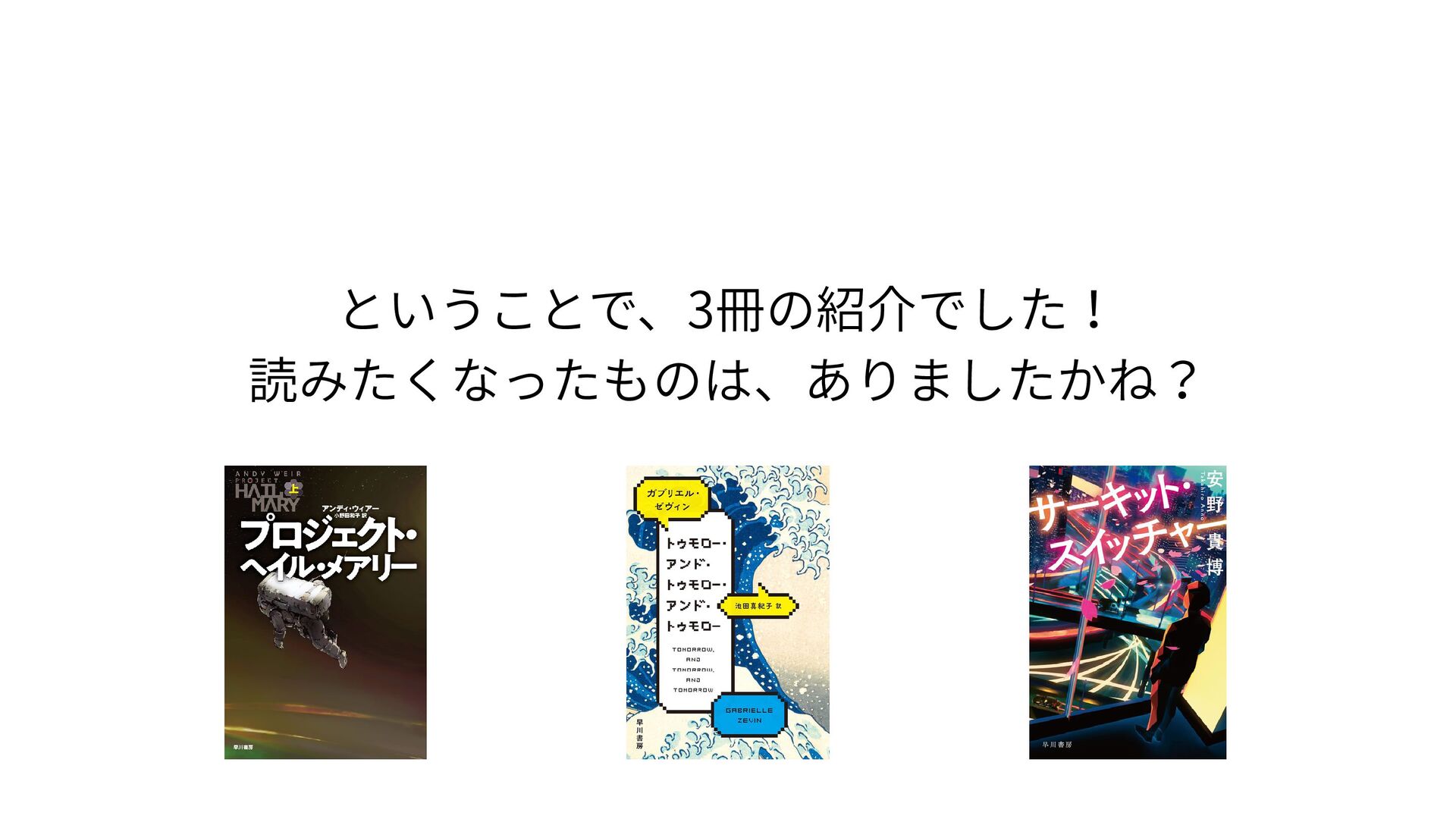 ということで、3冊の紹介でした! 読みたくなったものは、ありましたかね?