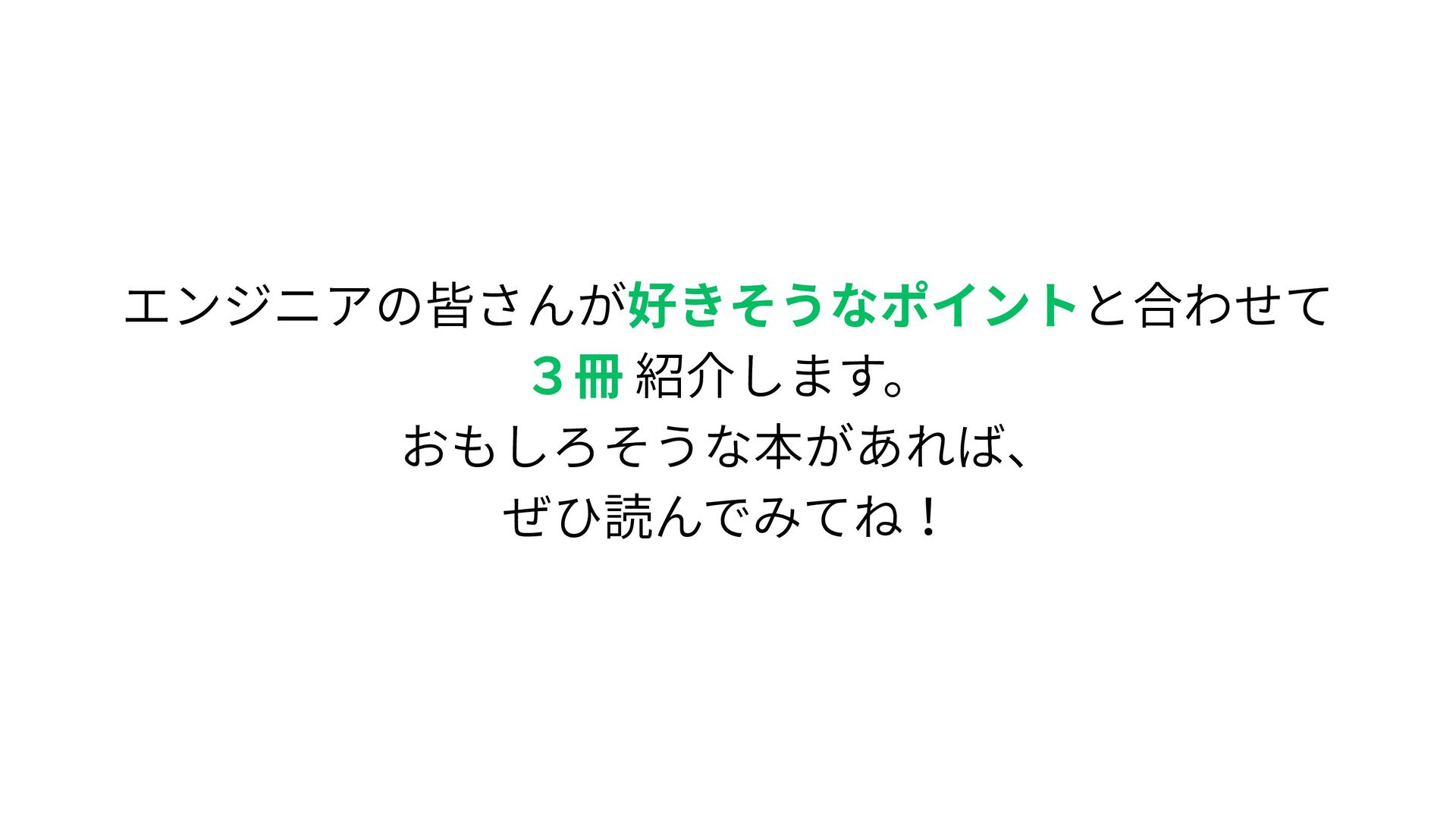エンジニアの皆さんが好きそうなポイントと合わせて 3冊 紹介します。 おもしろそうな本があれば、 ぜひ読んでみてね!