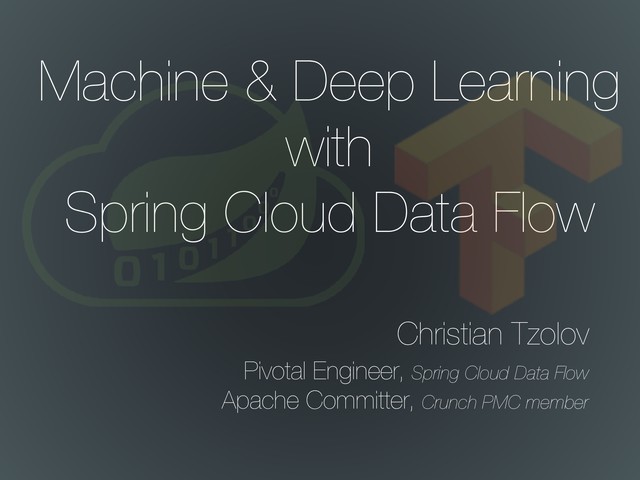 You can significantly simplify the task of implementing and operating the ML / DL models. In this talk, Christian will demonstrate how to use pre-trained computer vision and twitter sentiment analysis TensorFlow models in regular Spring Cloud Streams pipelines.