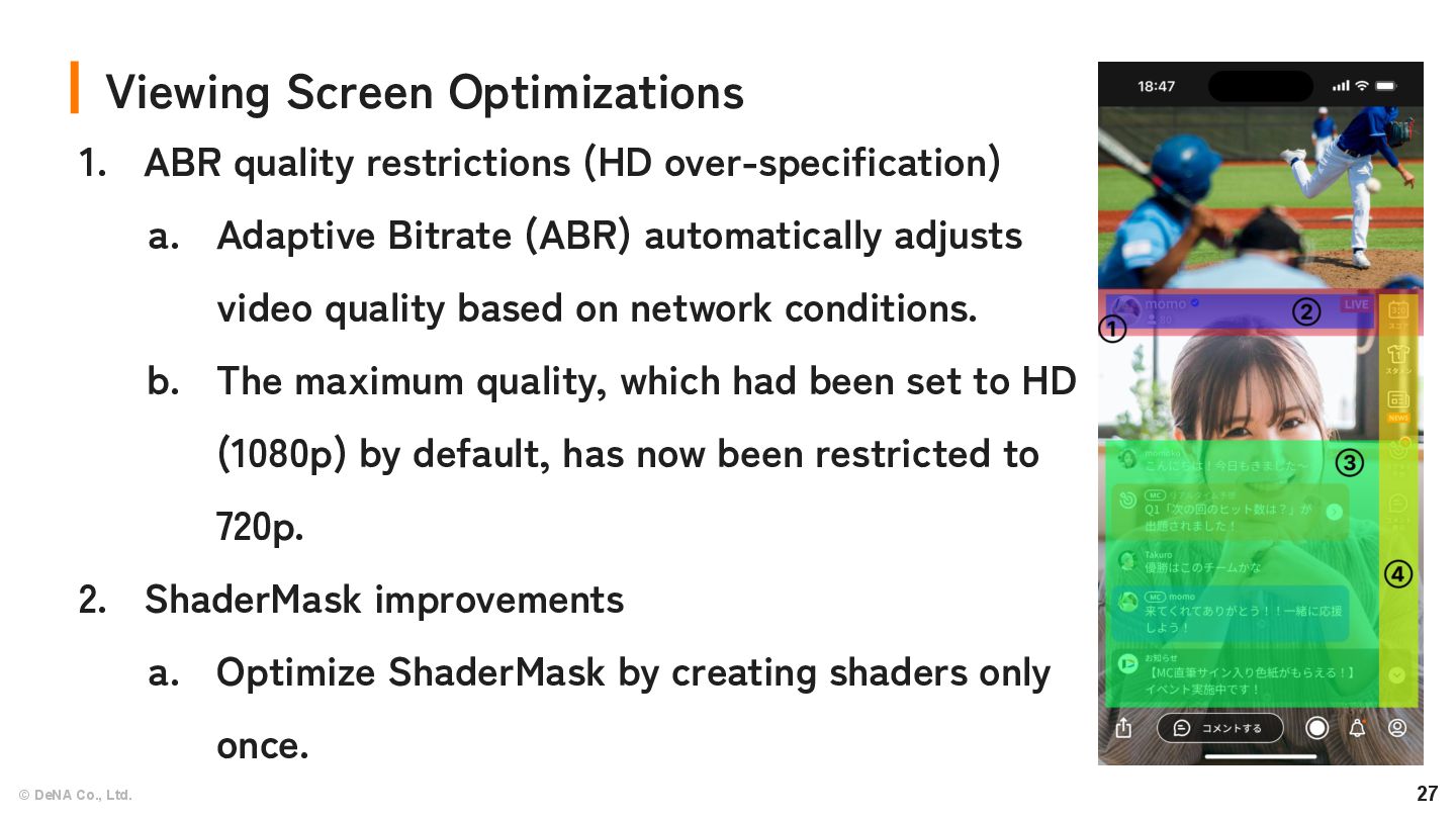 quality restrictions (HD over-specification) a. Adaptive Bitrate (ABR) automatically adjusts video quality based on network conditions. b. The maximum quality, which had been set to HD (1080p) by default, has now been restricted to 720p. 2. ShaderMask improvements a. Optimize ShaderMask by creating shaders only once.