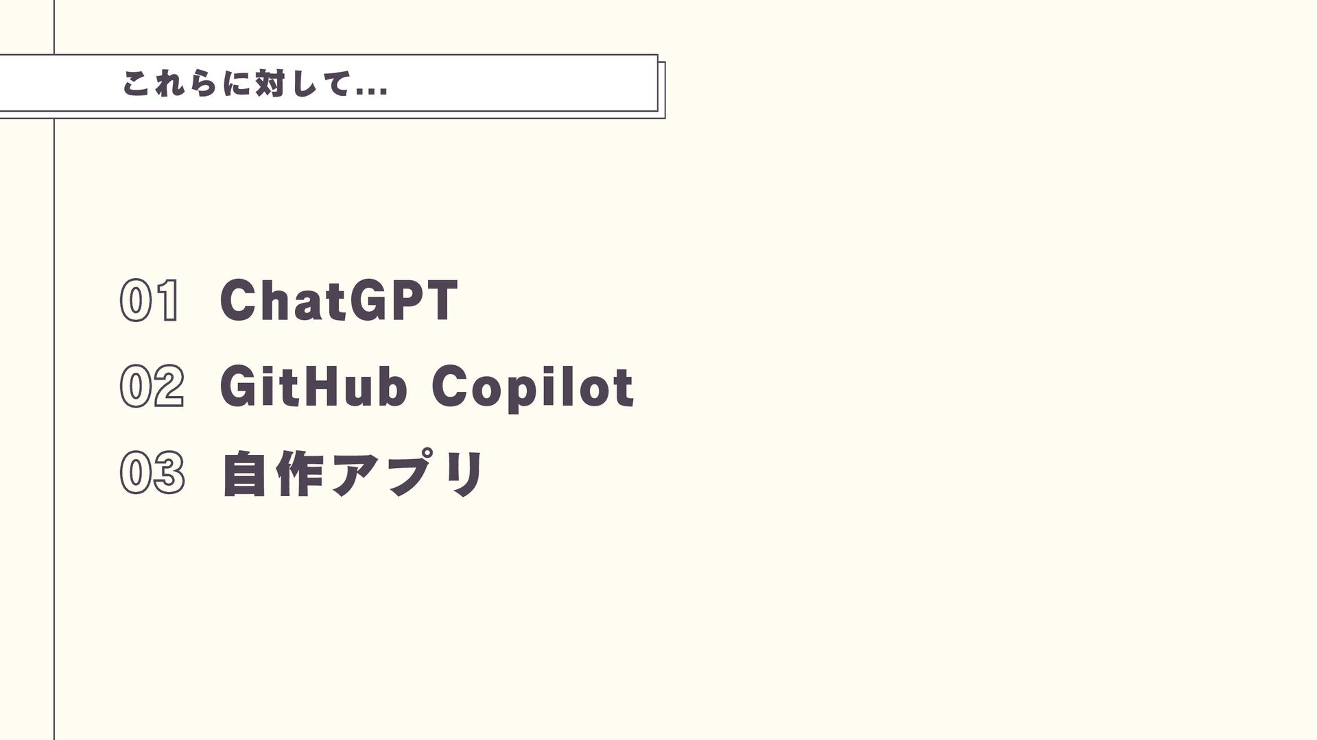 これらに対して... 01 ChatGPT 02 GitHub Copilot 03 自作アプリ