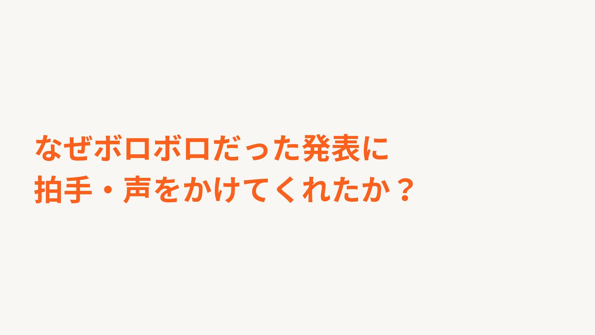 なぜボロボロだった発表に 拍手・声をかけてくれたか?