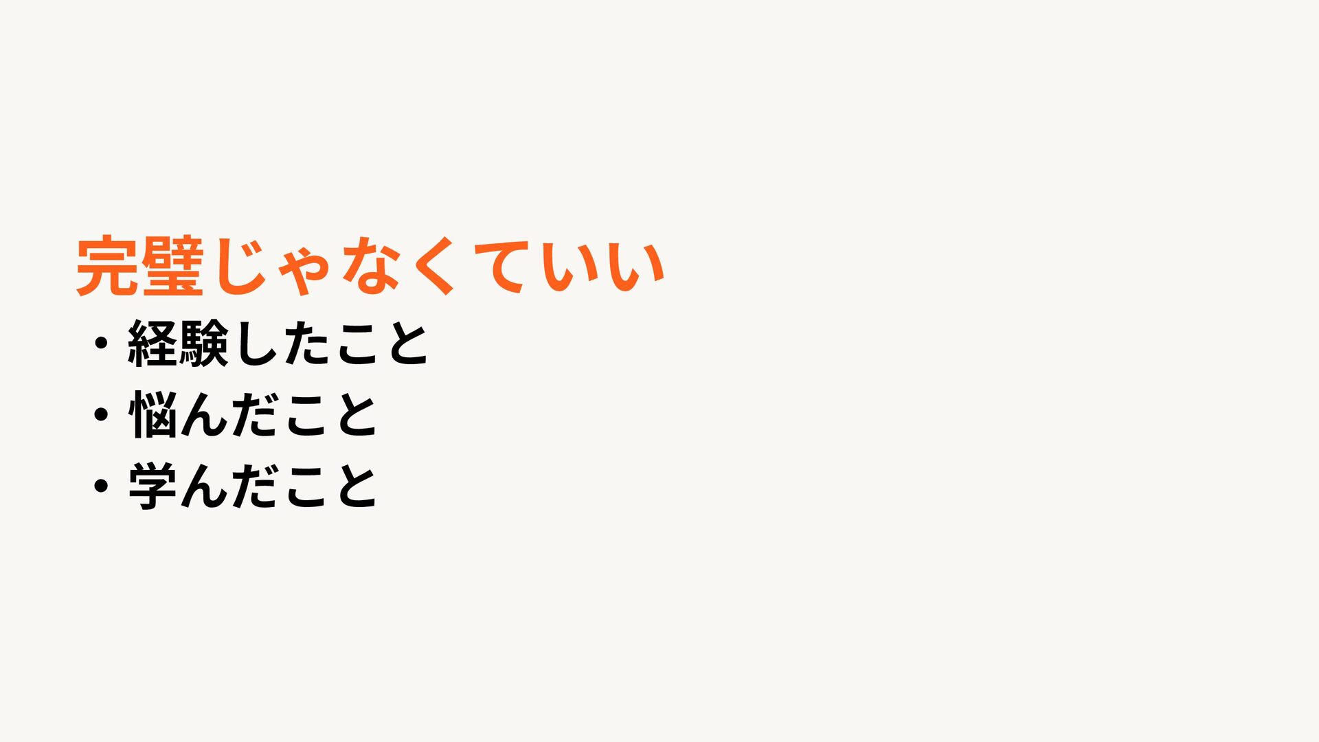 完璧じゃなくていい ・経験したこと ・悩んだこと ・学んだこと