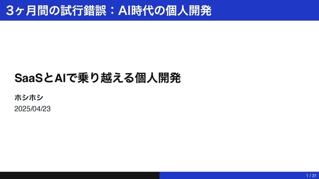 Hobby / GitHub Pages DB: Supabase ( 無料枠) / Firebase ( 無料枠) 認証: Supabase Auth / Clerk ( 無料枠) 独自ドメイン: なし ( 提供されるサブドメインを使う) 月数百円〜千円程度を許容できるなら: デプロイ: Cloud Run ( 低負荷なら安い) / Vercel Pro DB: Cloud SQL ( 最安インスタンス) / Supabase 独自ドメイン: あり ( 年額 1,000 〜2,000 円程度) 工夫次第で、お小遣い程度の負担で始められます! 26 / 31