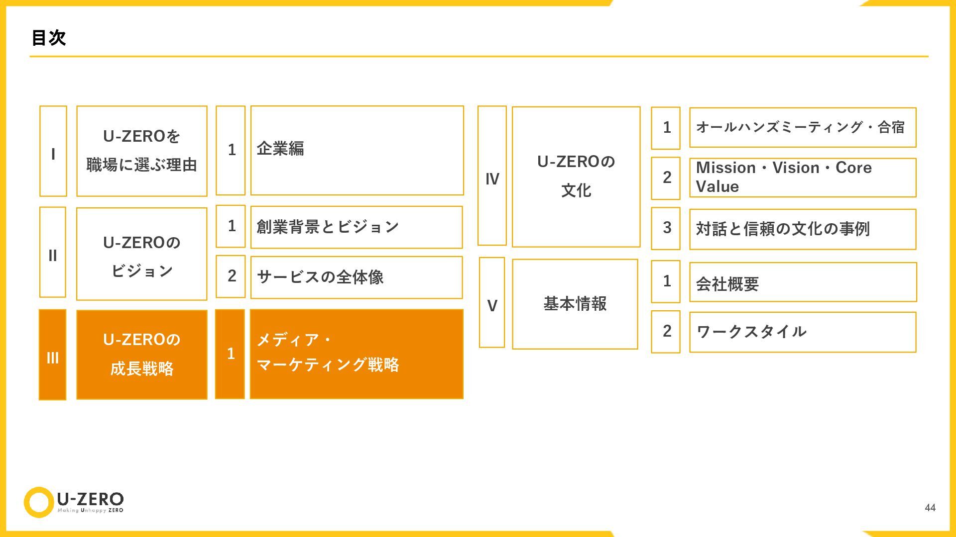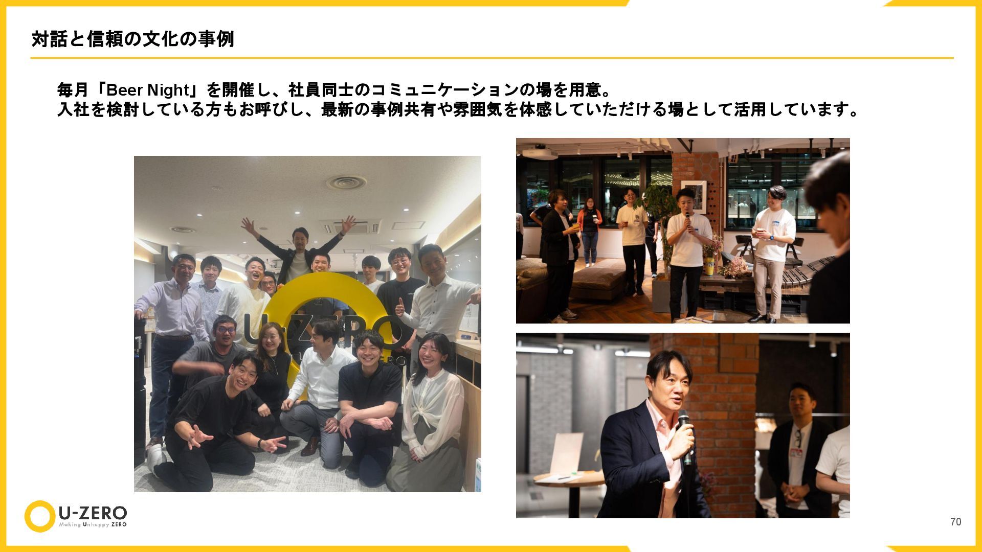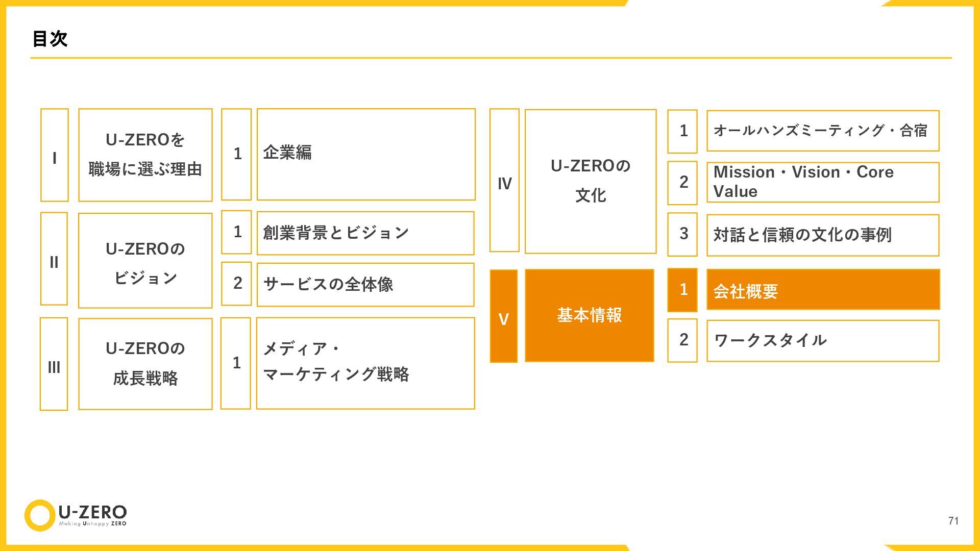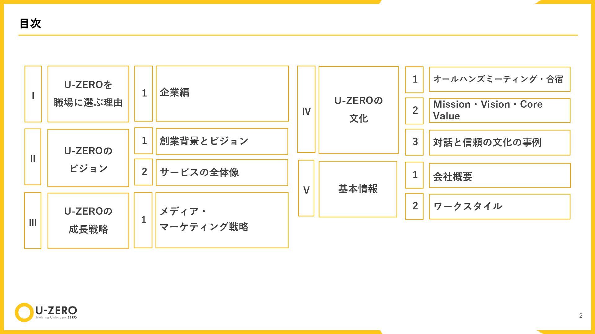 株式会社U-ZEROの公開用カルチャーデックです。 どのポジションも全力で採用しているので、ぜひお気軽にカジュアル面談などでお話ししましょう!