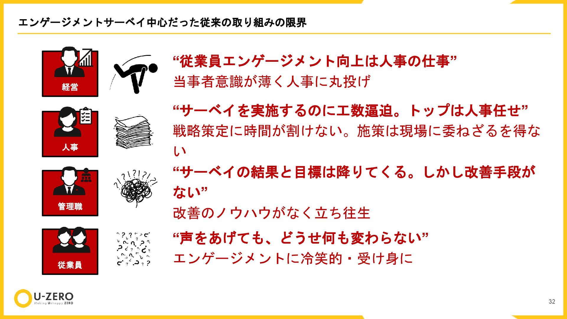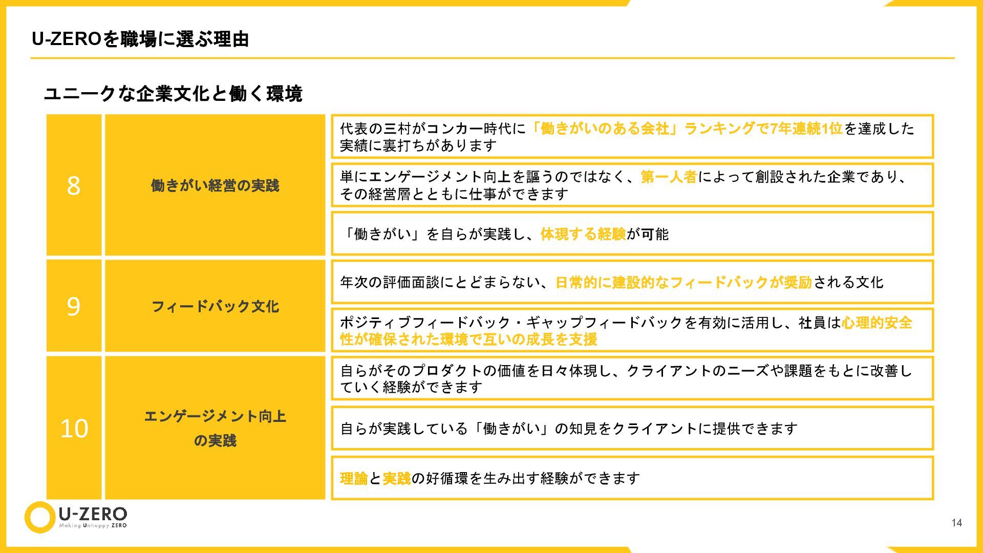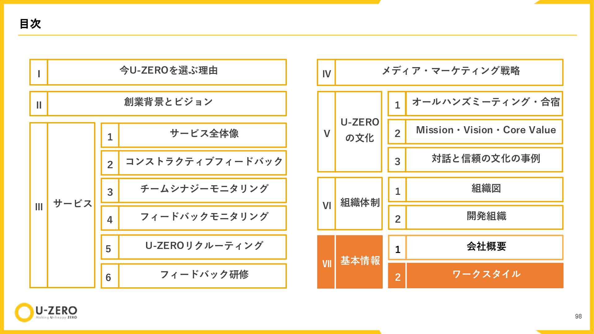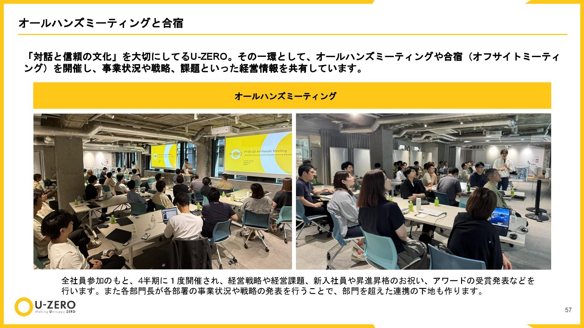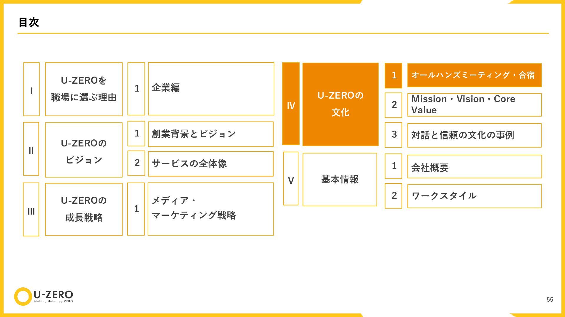 株式会社U-ZEROの公開用カルチャーデックです。 どのポジションも全力で採用しているので、ぜひお気軽にカジュアル面談などでお話ししましょう!