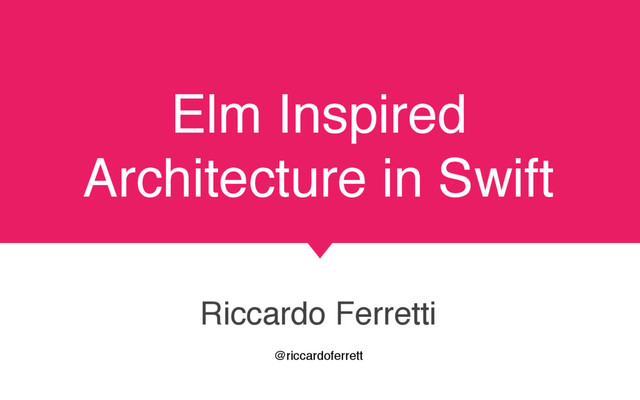 In this presentation Riccardo shares his experience how Elm-inspired architecture is used for his application written in Swift. As a listener you'll be guided through introduction to Elm, porting it to Swift and what has to be done to achieve this. Riccardo talks about hidden gems on this way, will describe pros and cons of this architecture.