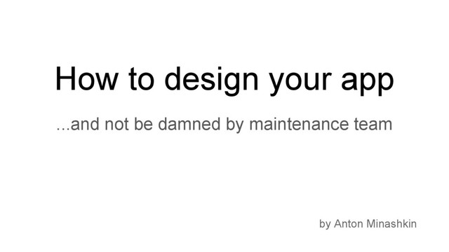 "How to design your app and not be damned by maintenance team" from Anton Minashkin