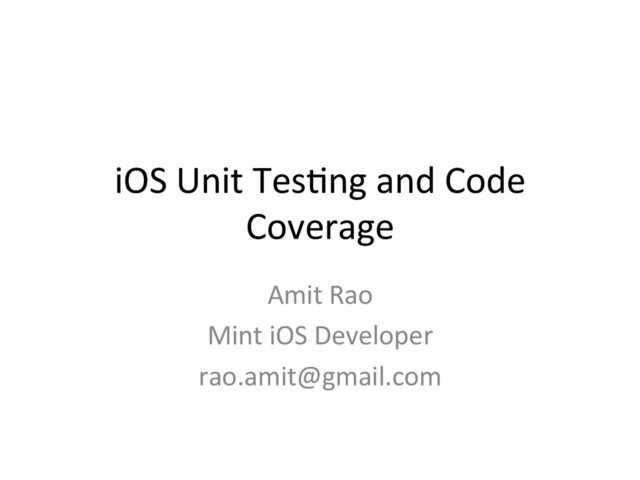 This talk was given by me at PhillyCocoa monthly meeting on how to develop a CI/CD framework for an iOS app. This talk describes the process involved in developing unit tests and reporting code coverage data for the Mint iOS app.