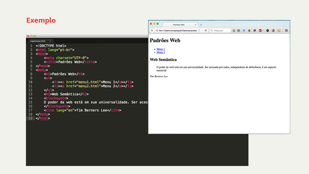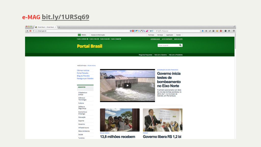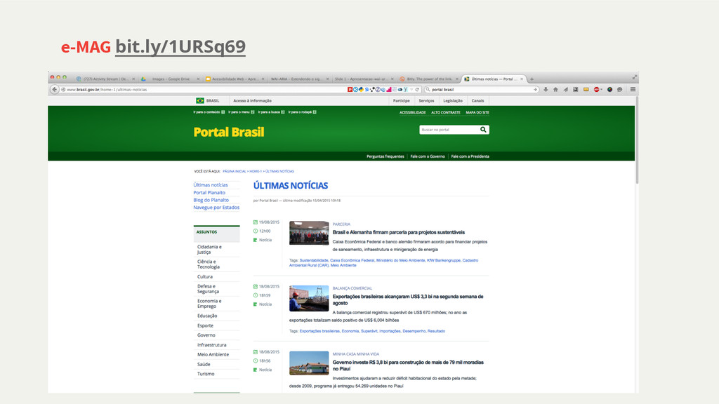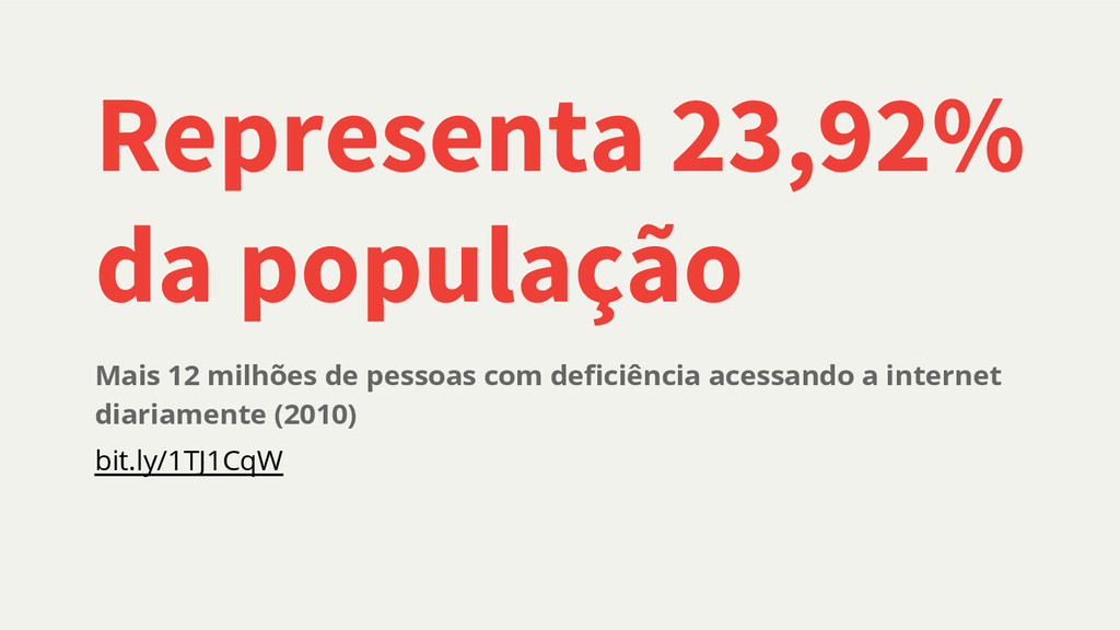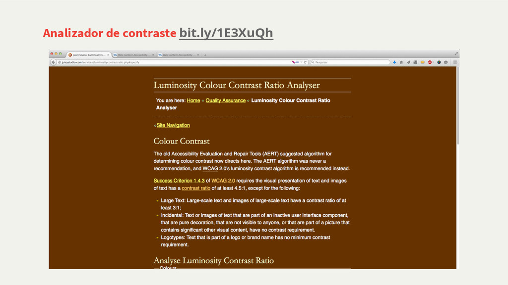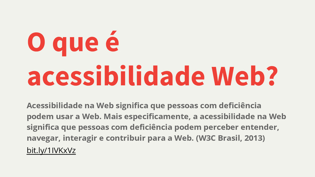pessoas com deficiência podem usar a Web. Mais especificamente, a acessibilidade na Web significa que pessoas com deficiência podem perceber entender, navegar, interagir e contribuir para a Web. (W3C Brasil, 2013) bit.ly/1IVKxVz