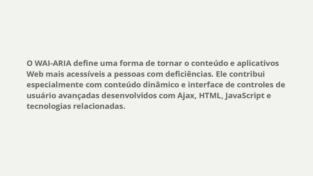 aplicativos Web mais acessíveis a pessoas com deficiências. Ele contribui especialmente com conteúdo dinâmico e interface de controles de usuário avançadas desenvolvidos com Ajax, HTML, JavaScript e tecnologias relacionadas.