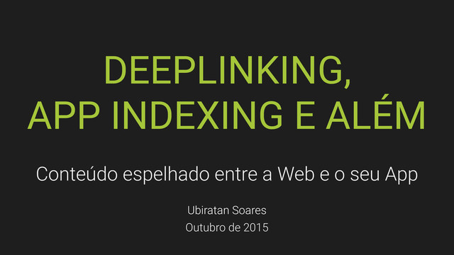 Usuário quer o mesmo conteúdo, independente de plataforma Integrações com links diminuem a fricção e melhoram a experiência do usuário como um todo Deeplinking e AppIndexing ajudam no re-engajamento de usuários