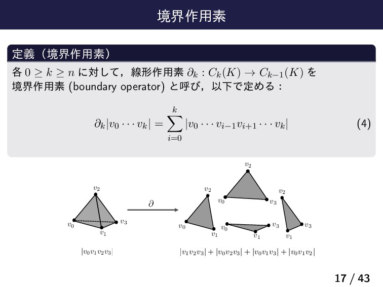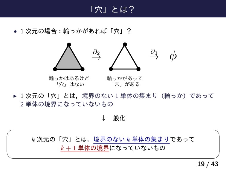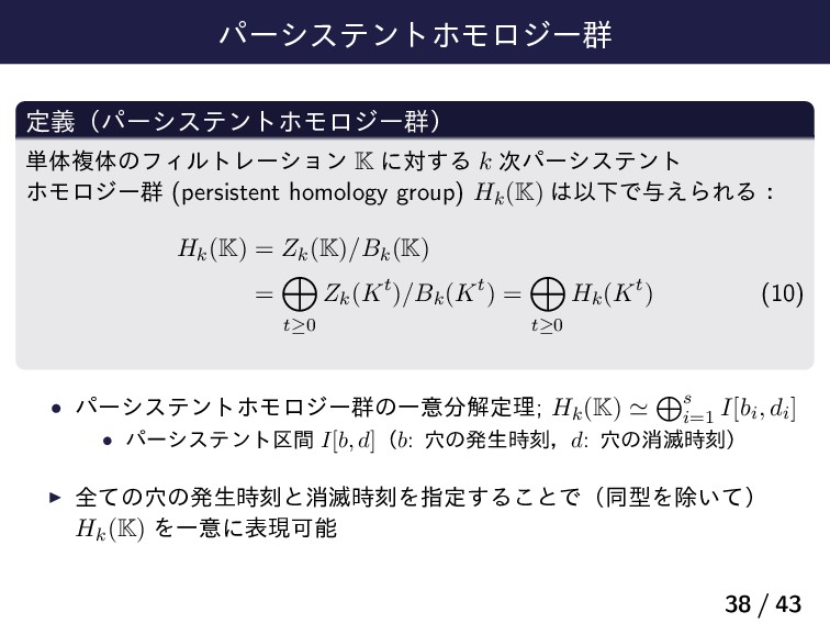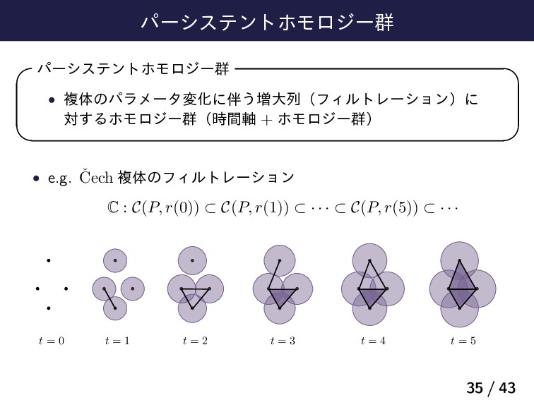 CBSDPEF ֤ੜݩʢ݀ʣͷ CJSUI͔ΒEFBUI·Ͱ ઢΛҾ͘ 0 1 2 3 4 4 3 2 1 QFSTJTUFODFEJBHSBN CJSUI EFBUI ֤ੜݩͷCJSUI C ͱ EFBUI E Λ࣍ݩฏ໘্ͷ C E ͱͯ͠දݱ ü ͍ઢˠOPJTZ ü ͍ઢˠSPCVTU ü ର֯ઢʹ͍ۙˠOPJTZ ü ର֯ઢ͔Βԕ͍ˠSPCVTU t = 0 t = 1 t = 2 t = 3 t = 4 39 / 43