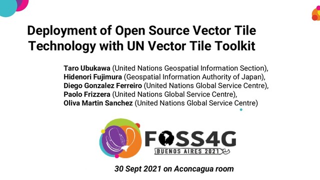 Tile Toolkit Taro Ubukawa (United Nations Geospatial Information Section), Hidenori Fujimura (Geospatial Information Authority of Japan), Diego Gonzalez Ferreiro (United Nations Global Service Centre), Paolo Frizzera (United Nations Global Service Centre), Oliva Martin Sanchez (United Nations Global Service Centre) 30 Sept 2021 on Aconcagua room