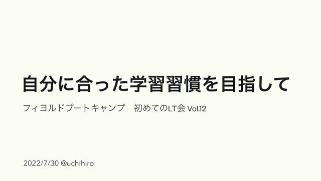 ࣗʹ߹ֶͬͨशश׳Λࢦͯ͠ ϑΟϤϧυϒʔτΩϟϯϓɹॳΊͯͷLTձ Vol.12 2022/7/30 @uchihiro