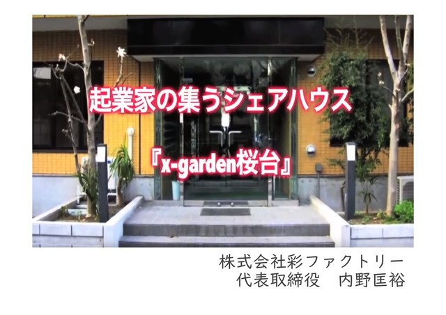 起業家シェアハウス@東京の紹介スライドです https://www.youtube.com/watch?v=wJOKVl76IbQ https://www.x-garden.jp https://www.facebook.com/skilluphouse