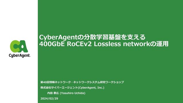 (RDMA) ②NVLink それぞれ要件が違ったネットワークが求められる ① CPUセントリックなインターネットなどの通信: Lossy ② サーバー内のGPU間通信はPCIeよりも広帯域なNVLink4で通信 ③ サーバーを跨ぐGPU間通信は①と独立したロスレス低遅延: Lossless ④ ストレージネットワーク(NFS / GPDS:GPU Direct Storage) ⑤ BMC/IPMIなどの管理用ネットワーク NIC GPU CPU Mem NIC NVMe NIC NIC Interconnect SW CPU GPU NIC GPU CPU Mem NIC NVMe NIC NIC PCI switch Storage SW Internet SW Management PCI switch ④NFS / GDS NVSwitch NVSwitch