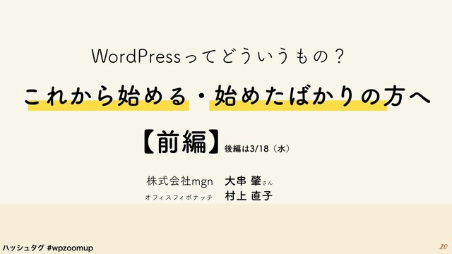 WP ZoomUP #36 WordPressってどういうもの?これから始める・始めたばかりの方へ https://wpzoom.connpass.com/event/168050/