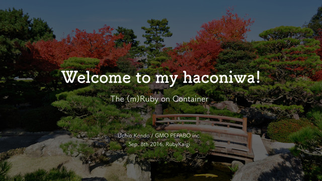 container's hostname: config.name = "haconiwa-0491a405" # The first process when invoking haconiwa run: # config.init_command = "/bin/bash" # To: config.init_command = %w(/usr/sbin/sshd -D) # And uncomment: config.daemonize! #... end $ haconiwa run test.haco