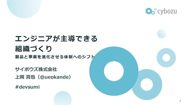 エンジニアが主導できる 組織づくり 製品と事業を進化させる体制へのシフト サイボウズ株式会社 上岡 真也(@ueokande) #devsumi 1