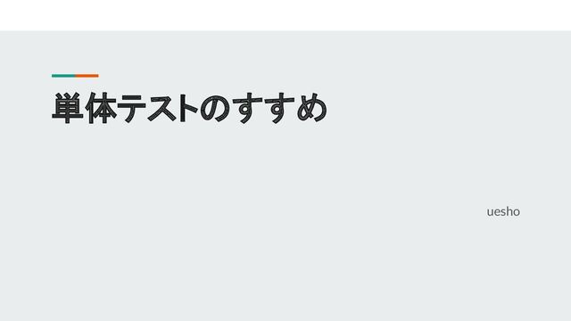 原則 テストコードは常にアップデートする • テストコードを見て仕様が分かるのが理想 • 仕様がアップデートされるたびにテストコードがアップデートされる べき • そうしないとテストコードが腐る →