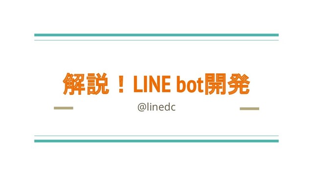’xxxxxxx’, channelAccessToken: ’xxxxxxx’ } const client = new line.Client(config) …. async function handleEvent(event) { …. if (event.type.message.text === ‘今年のアニメは?’) { const animeList = await getCurrentAnimeList() return client.replyMessage(event.replyToken, animeList) } …. } 基本的に前処理で書くことはどの LINE botを実 装する場合も同じ(そこらへんのサンプルコード をコピペしても良い) 受け取ったメッセージとその内容を元に返信する メッセージを記述(自分で実装を考えるのはここ だけ)