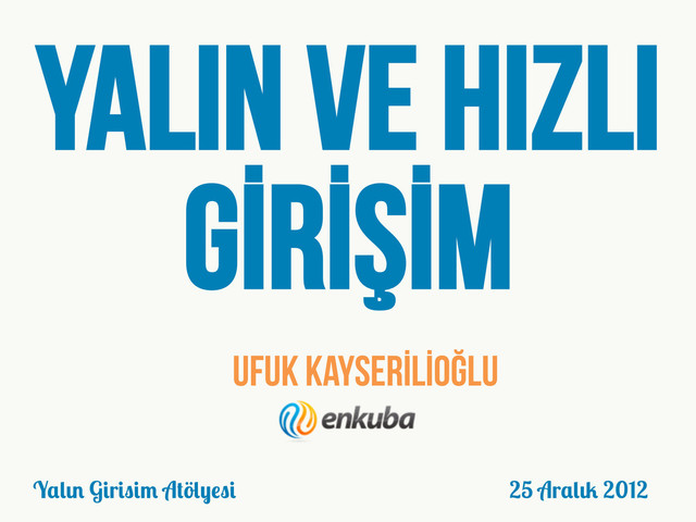 YALIN VE HIZLI GİRİŞİM Ufuk KAYSERİLİOĞLU 25 Ar ı 2012