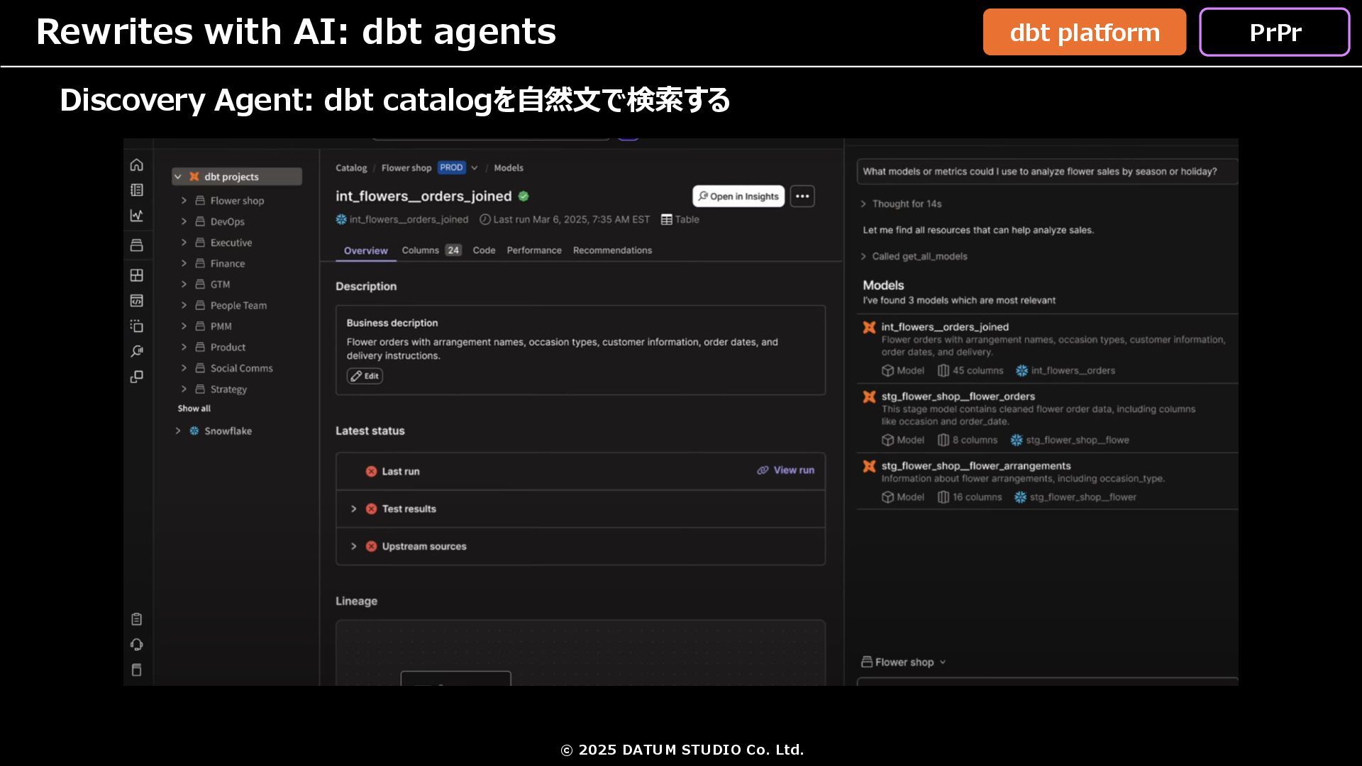agents Discovery Agent: dbt catalogを自然文で検索する dbt platform PrPr