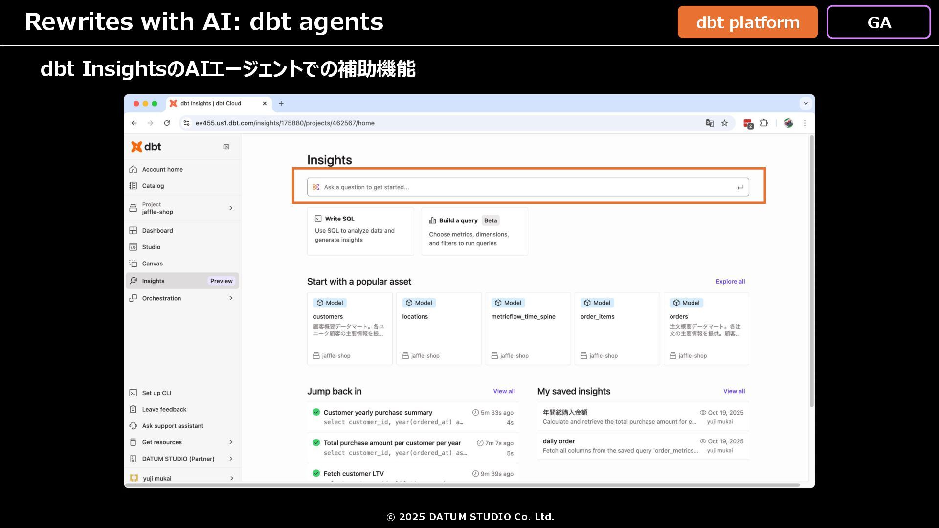 agents dbt InsightsのAIエージェントでの補助機能 dbt platform GA
