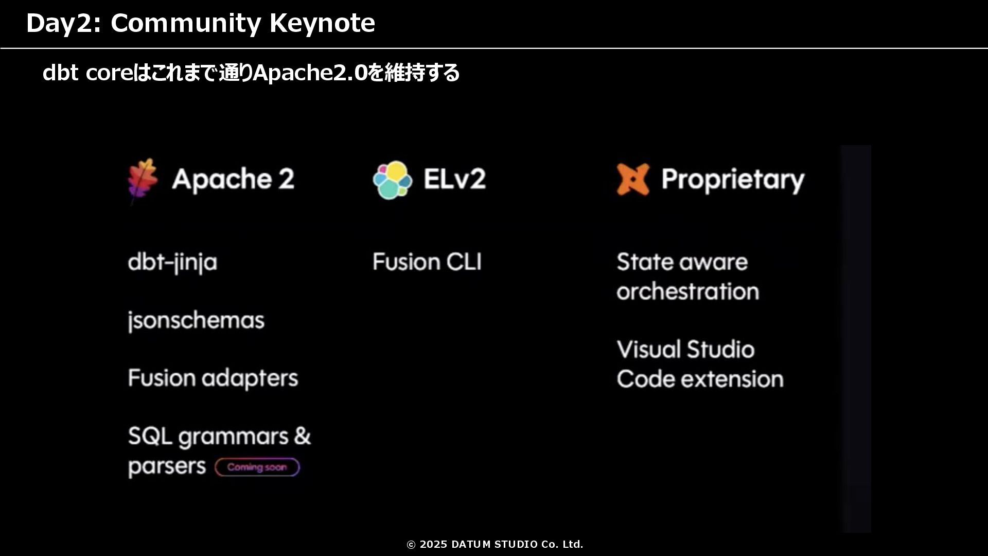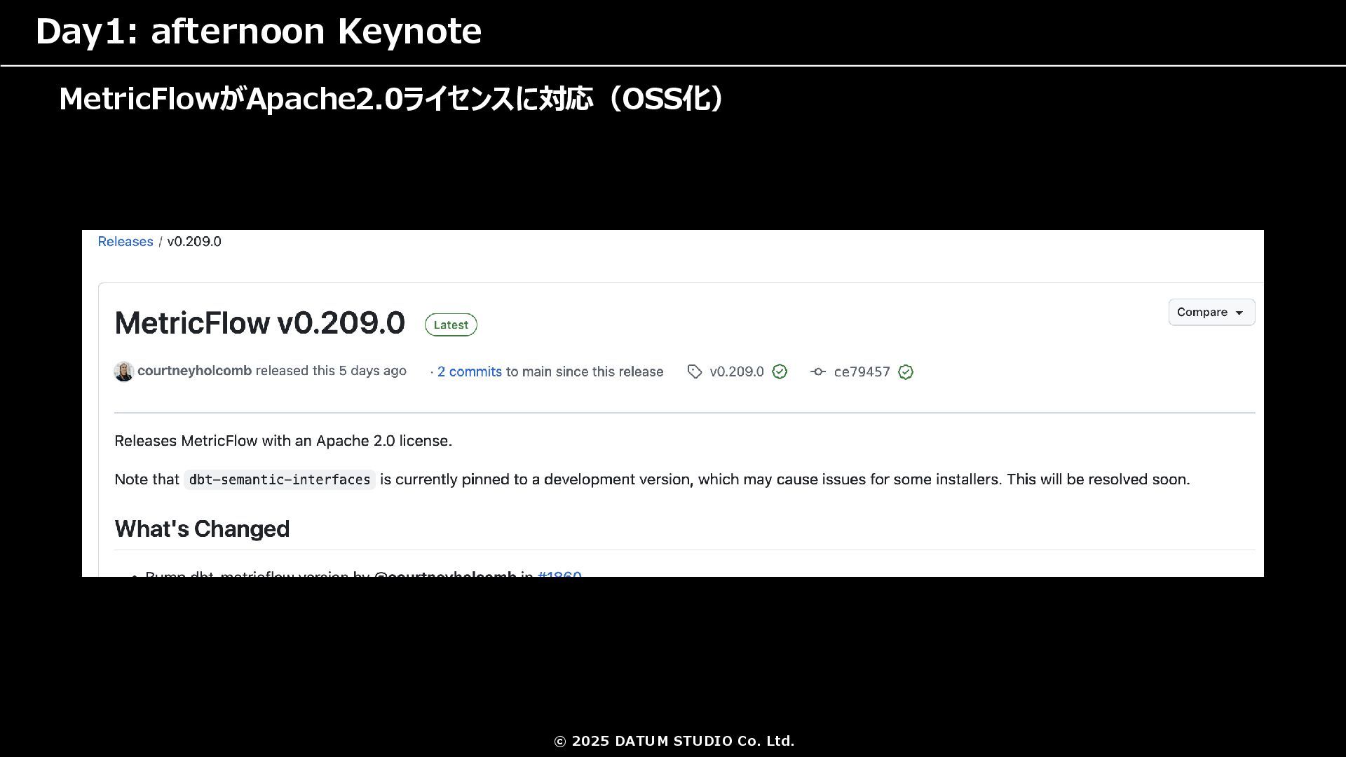 © 2025 DATUM STUDIO Co. Ltd. Day1: afternoon Keynote MetricFlowがApache2.0ライセンスに対応(OSS化)