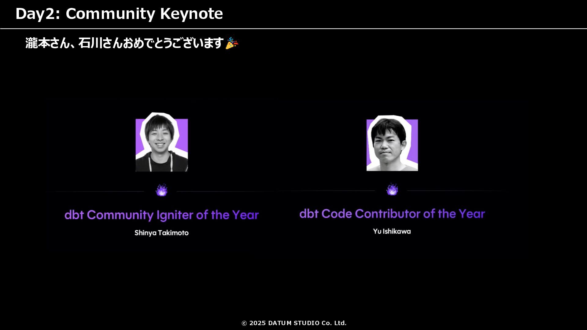 © 2025 DATUM STUDIO Co. Ltd. Day2: Community Keynote 瀧本さん、石川さんおめでとうございます