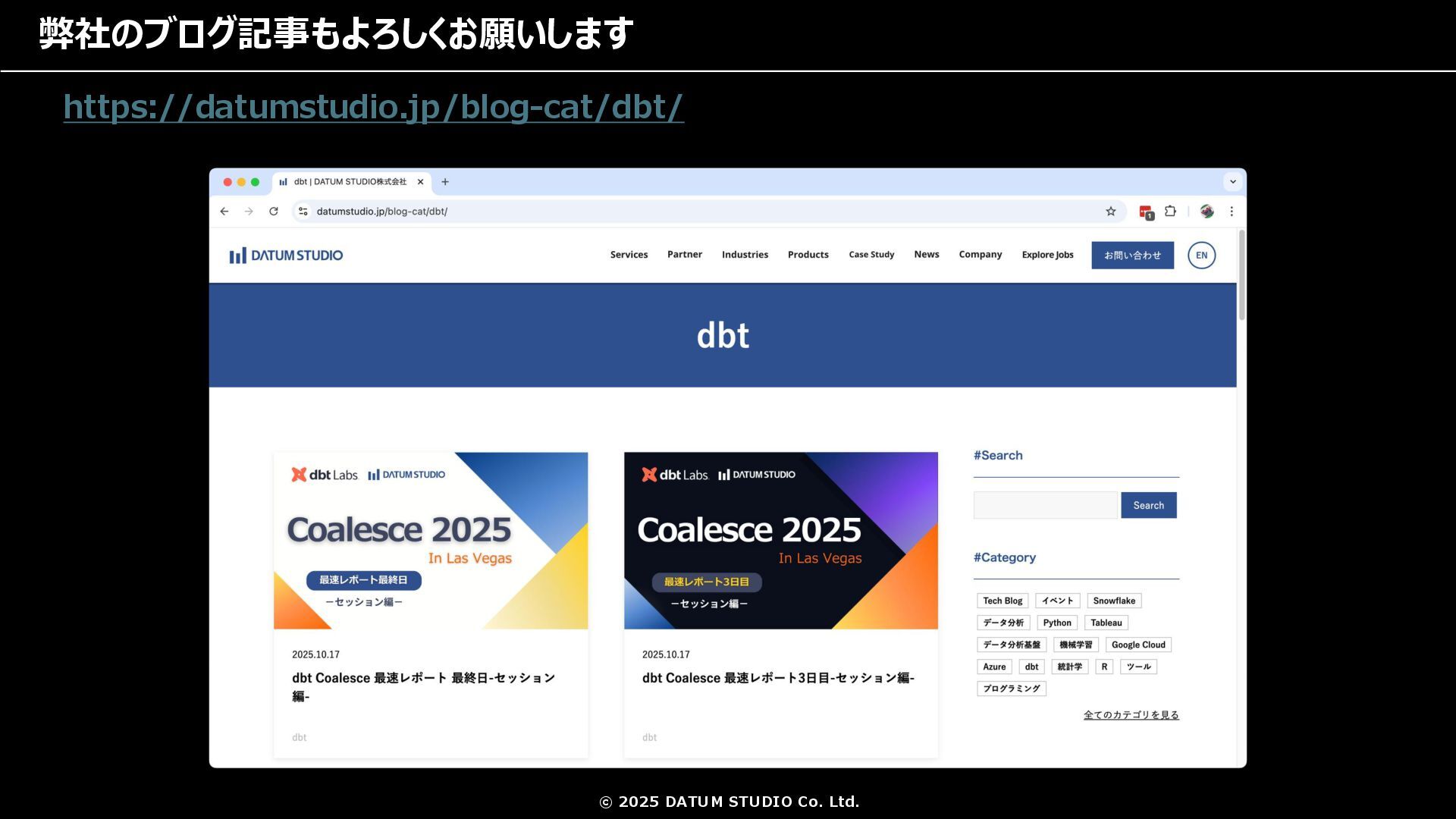 © 2025 DATUM STUDIO Co. Ltd. 弊社のブログ記事もよろしくお願いします https://datumstudio.jp/blog-cat/dbt/