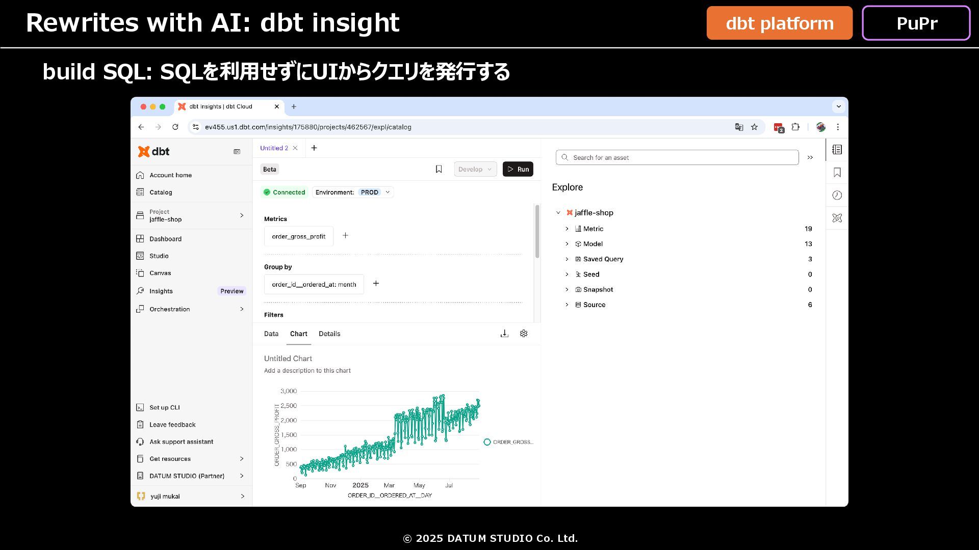 insight build SQL: SQLを利用せずにUIからクエリを発行する dbt platform PuPr