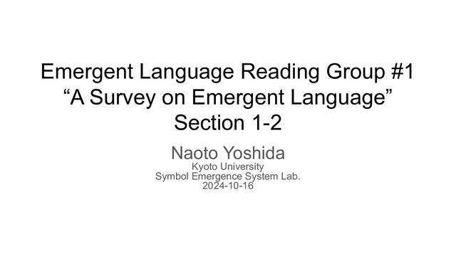 Materials from the survey paper reading group at the Kyoto University Symbol Emergence Systems Group. @ October 16, 2024 Session #1, Section 1-2