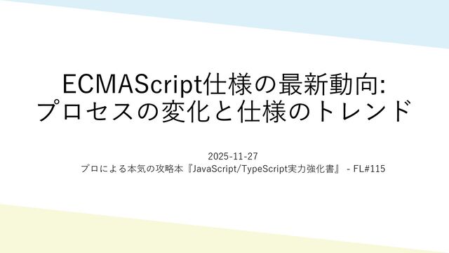 ECMAScript仕様の最新動向: プロセスの変化と仕様のトレンド 2025-11-27 プロによる本気の攻略本『JavaScript/TypeScript実力強化書』 - FL#115