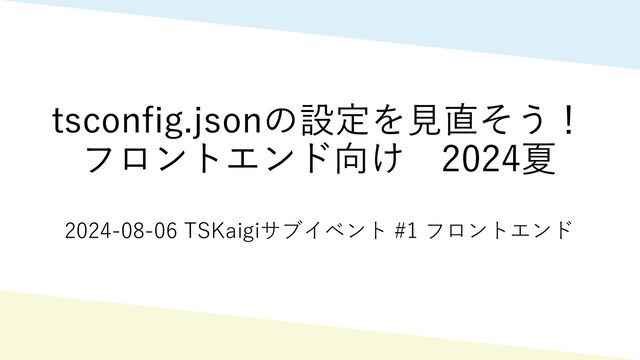 tsconfig.jsonの設定を⾒直そう! フロントエンド向け 2024夏 2024-08-06 TSKaigiサブイベント #1 フロントエンド