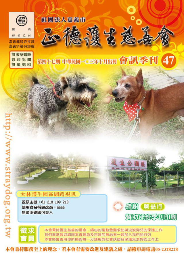 住址:嘉義市 案由: 案夫於84年即往 生 , 案 家 為 本 會 96年扶助對象。 案主原先有低收入 戶資格,但案長女 及案次女相繼成年 後,合併計算勞動 人口,今年起低收入戶資格被取消,案家只剩 案長子殘障津貼4,700元,案次子及案五子及 案三女中低兒少補助1,900元/人,合計10,400 元。案主因生活困苦,已將案三子及案四子送 人撫養。案主自述,案長女及案次女於年初相 繼離家後,音訊全無,無法資助案家經濟。案 家長女及次女均屬勞動人口,案家子女雖對案 家不聞不問,但礙於法規,案家仍無法通過低 收入戶資格審查。案家尚有一智障小孩,另還 有一13歲及8歲幼兒,案主因程度認知薄弱, 並無避孕措施,案家除政府補助款外無其他收 入,案五子及案三女均需就學,但經濟面臨困 境,懇請補助。 本會長期補助3個月,每月2,000元,白米3包。 ﹝103/08-103/10﹞ ▪103年07月至09月急難救助戶 戶號:711 吳X億 年齡:71歲 住址:嘉義市 案由: 案主於5月份因攝護腺肥大,無法排尿,住院 經直視鏡由尿道伸入,以電動刀割除。醫囑術 後騎車如有血尿須盡速回診。案主自述因心血 管、冠狀動脈硬化等疾病,醫囑須住院手術, 以免造成心肌梗塞或血栓,危及生命。但住院 支出案主仍無著落。案主有三款低收入戶資格 及中度聽障、肢障身心障礙手冊。平日餐點由 政府居家送餐照應,房租及醫療支出由補助款 支應。住院手術雖有健保給付。但耗材支出仍 需負擔,案主家庭支持系統薄弱。本會急難救 助5,000元,助案主早日手術,避免因病造成 更多副作用。 本會急難救助5,000元、白米1包。 戶號:714 郭X富 年齡58歲 住址:嘉義市 案由: 案主因腦血栓合併腦梗塞、多發神經疾病、腰 薦椎神經根病變,造成下肢需依賴椅型助行器 103年07月至09月家扶戶:21,000元(共10位) 家扶補助戶 103年07月至09月白米戶:42包(共11戶) 103年07月至09月狗隻領養明細 童號 姓名 地區 補助金額 備註 2579 吳X珊 雲林縣 1500元 2584 林X瑜 雲林縣 3000元 2861 張X雯 嘉義縣 3000元 2882 丁X銓 雲林縣 1500元 2983 柯X芬 嘉義縣 1500元 3528 陳X璇 嘉義縣 1500元 3588 黃X瑋 嘉義市 3000元 3590 張X勝 嘉義市 1500元 3591 林X翔 嘉義縣 1500元 3657 李X翰 嘉義市 3000元 戶號 姓名 地區 補助包數 備註 051 徐X忠 嘉義縣 6包 686 何X祥 嘉義市 3包 103/07 689 簡X益 嘉義市 4包 103/07-103/08 691 吳X德 嘉義市 6包 709 馮X儀 嘉義市 3包 711 吳X億 嘉義市 1包 103/07 713 陳X華 嘉義市 6包 103/08-103/09 714 郭X富 嘉義市 2包 103/08 715 陳X霖 雲林縣 4包 103/08 716 林X澤 嘉義縣 4包 103/09 717 謝X伸 嘉義縣 3包 103/09 名稱/月份 7月 8月 9月 領養 12隻 6隻 5隻 餘額 1,186隻 117隻 1,181隻