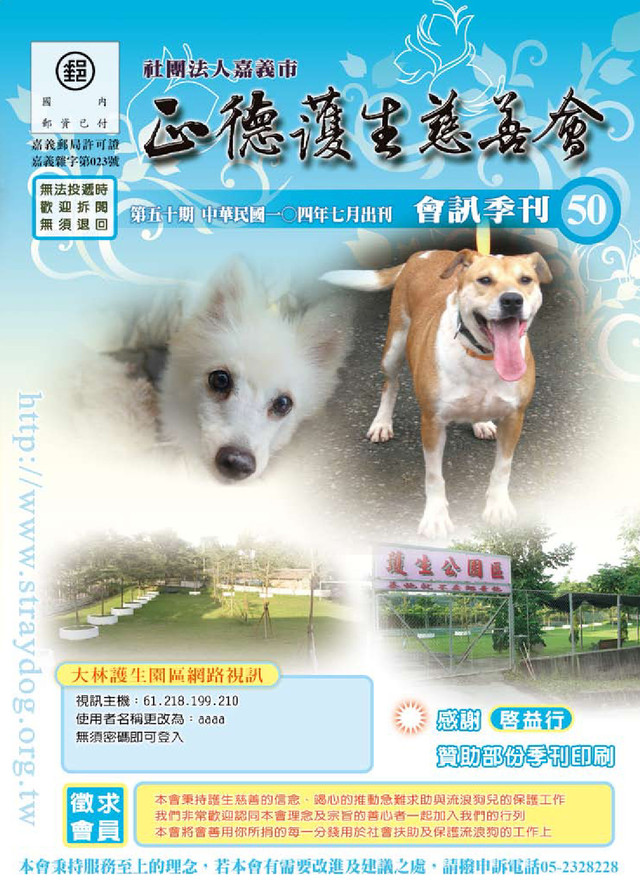 住址:嘉義市 案由: 案主因急性闌尾炎於4月初入院進行 闌尾切除術,住院9天。月底仍需至 醫院進行消化性潰瘍門診,目前身 體虛弱,無法就業。案主已離婚, 自述無子女。案父母均已往生,案 家兄弟各有家室,家庭支持系統薄 弱。案主因病昏倒於公園,送醫時 發現案主身上有多年前認識福全里 里幹事黃先生﹝已退休﹞名片,由 路人連絡,目前暫住黃先生家。案 主目前並無身心障礙手冊,年齡又 尚未滿65歲,無法獲得政府資源協 助。 本會長期補助3個月,每月3,000元、白米2 包 104/04-104/06 戶號:753 吳X興 年齡36歲 住址:嘉義市 案由: 案 父 曾 於 100年7月因 腰椎椎間盤 突出施行椎 體融合術, 術後無力工 作,本會曾 補助6個月生活。案主目前亦因腰椎 第3、4、5節椎間盤突出暨腰椎2、 3、4脊椎狹窄併坐骨神經痛,於去 年12月住院進行神經減壓術及椎間 盤切除,醫囑需休養半年。案主未 婚,與案父同住﹝戶籍謄本資料為 單獨生活戶﹞,訪視時案主身體健 康狀況復原尚可,雖不影響行進, 但短期之間尚無法就業。 本會長期補助3個月,每月3,000元、白米2 包 104/04-104/06 戶號:755 林X褕 年齡64歲 住址:嘉義市 案由: 案主有二段婚姻,第一段婚姻因案 104年04月至06月家扶戶:15,000元(共7位) 家扶補助戶 104年04月至06月白米戶:62包(共14戶) 104年04月至06月狗隻領養明細 童號 姓名 地區 補助金額 備註 2861 張X雯 嘉義縣 3000元 2882 丁X銓 雲林縣 1500元 3528 陳X璇 嘉義縣 1500元 3588 黃X瑋 嘉義市 3000元 3590 張X勝 嘉義市 1500元 3591 林X翔 嘉義縣 1500元 3657 李X翰 嘉義市 3000元 戶號 姓名 地區 補助包數 備註 051 徐X忠 嘉義縣 6包 726 陳X敏 嘉義市 6包 731 劉X為 嘉義市 3包 104/04 742 江X壽 嘉義市 6包 743 楊X陸 嘉義市 6包 751 蔡X 雲林縣 6包 104/04 752 陳X山 嘉義市 6包 753 吳X興 嘉義市 6包 755 林X褕 嘉義市 4包 104/05-104/06 756 許X興 嘉義市 4包 104/05-104/06 758 蔡X佑 嘉義縣 3包 104/05 759 吳X鼎 嘉義市 2包 104/06 760 鄭X英 嘉義縣 3包 104/06 761 阮X菊 嘉義市 1包 104/06 名稱/月份 4月 5月 6月 領養 15隻 5隻 9隻 餘額 1,172隻 1,179隻 1,166隻