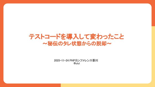 テストコードを導入して変わったこと 〜秘伝のタレ状態からの脱却〜 2025-11-24 PHPカンファレンス香川 @uiui