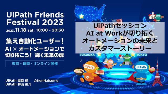 ン、式を効率的に作成したい 信頼性の高いアプリケーション と自動化を保証するための テストケースの作成 現状のプロセスから自動化の 可能性をより簡単に見つけ出す 必要がある 日常的に発生している 時間のかかる作業を 手伝って欲しい Autopilot for UiPath Test Suite Autopilot for UiPath Process Mining Autopilot for UiPath Communications Mining Autopilot for UiPath Studio Autopilot for UiPath Apps Autopilot for UiPath Assistant (ビジネスユーザー)