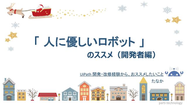 「 人に優しいロボット 」 のススメ(開発者編) parti-technology UiPath 開発・改修経験から、おススメしたいこと たなか