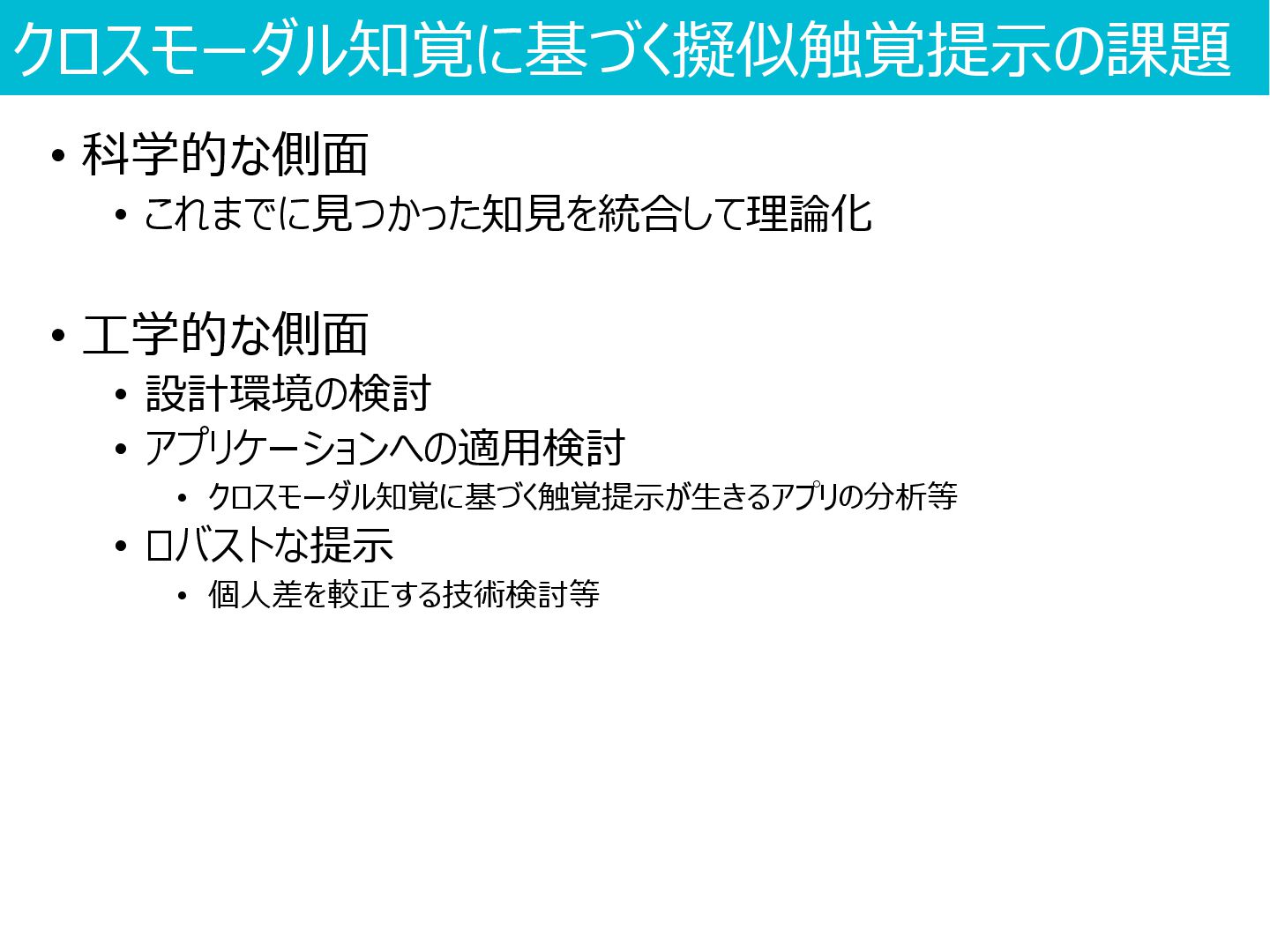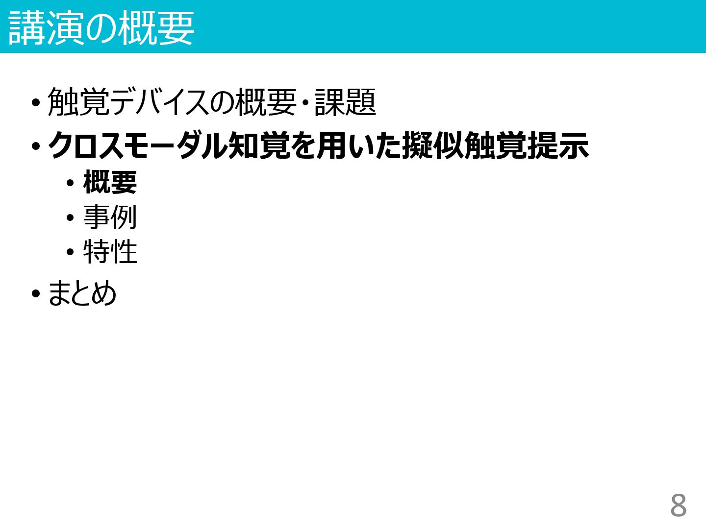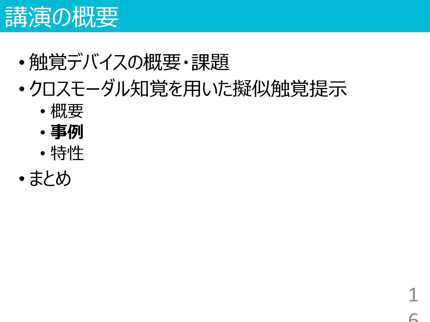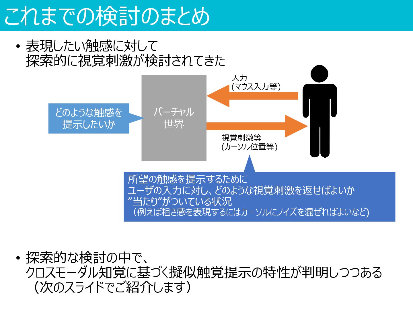 & Ban, Y. (2021). Survey of Pseudo-haptics: Haptic Feedback Design and Application Proposals. IEEE Transactions on Haptics. https://ieeexplore.ieee.org/document/9424469 • 本日の内容にご興味を持たれた方は↓をご参照ください