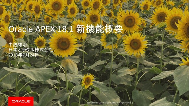 | 今は、ラテンアメリカをツアー中。 Asuncion, Paraguay July 31, 2018 http://ougpy.org/eventos/odct18/ Santiago, Chile August 2, 2018 http://www.cloug.cl/ Sao Paulo, Brasil August 4, 2018 https://guobtechday2018.eventize.com.br/ Montevideo, Uruguay August 6-7th, 2018 http://www.uyoug.org.uy/ Buenos Aires, Argentina August 9, 2018 http://www.aroug.org/ Lima, Peru August 11, 2018 http://www.peoug.org/ 9 Oracle Developer Community Tour 2018 アジア・ツアーも今年の秋頃に計 画されている、と聞いています。 未確定ですが、日本は 11月13 日を予定しています。 決定次第、詳細をお伝えいたし ます。